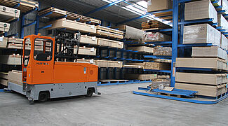 Zo ontstond er een 38 meter lange hal waarvan de buitenwanden telkens uit een eenzijdige draagarmstelling bestaan. Bovendien werd er in het midden tussen beide rekken een tweezijdige draagarmstelling geplaatst. Geleiderails maken het gebruik van een multidirectionele zijlader in de smalle gang mogelijk. Door middel van de individueel op maat gesneden rekken met een hoogte van 5,5, 6,3 en 7,1 meter kon de hal optimaal aangepast worden aan de omgeving. Elk van de 1850 mm lange draagarmen draagt een last van maximaal 600 kilogram. Daarbij zijn de draagarmen niet aan de staanders geschroefd of gelast, maar worden ze flexibel ingehaakt in een rooster van 100 mm in de rekstaanders. Zo kunnen ze bij aanstoten meegeven.